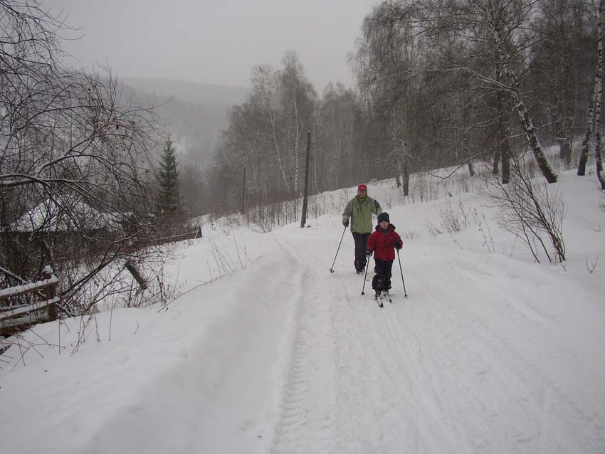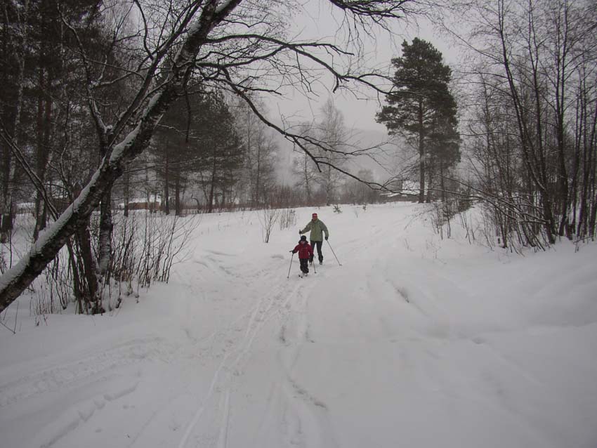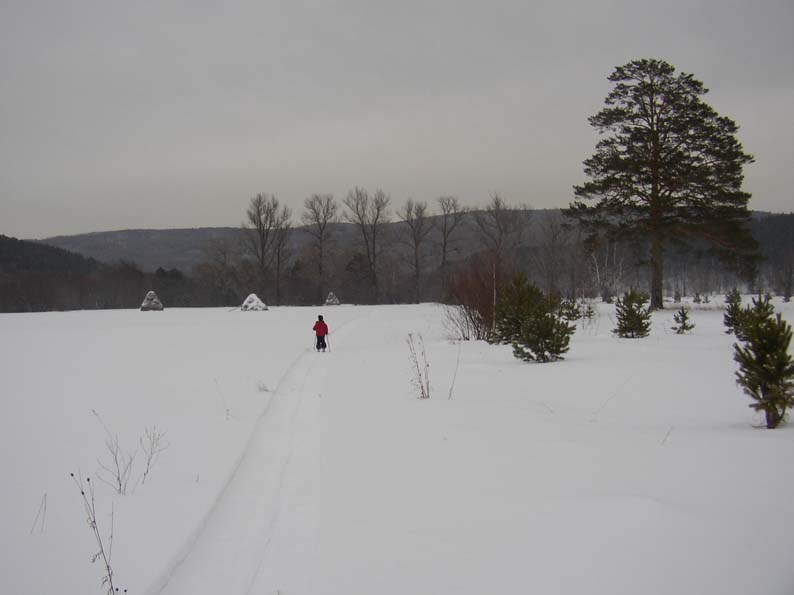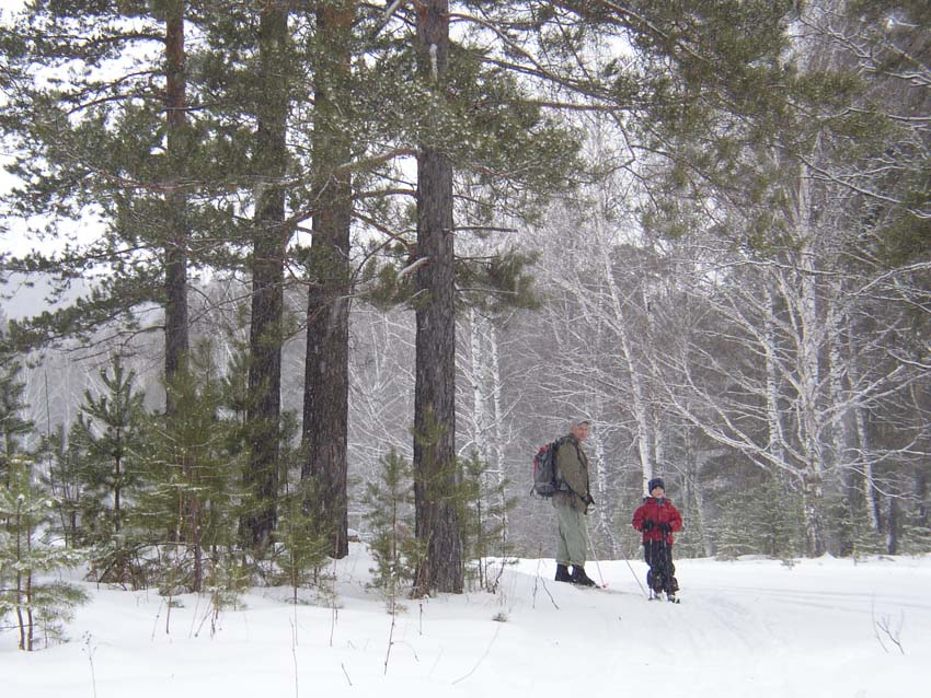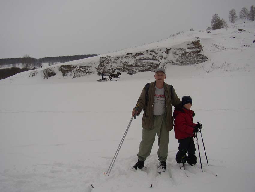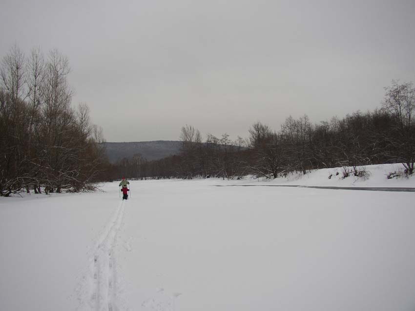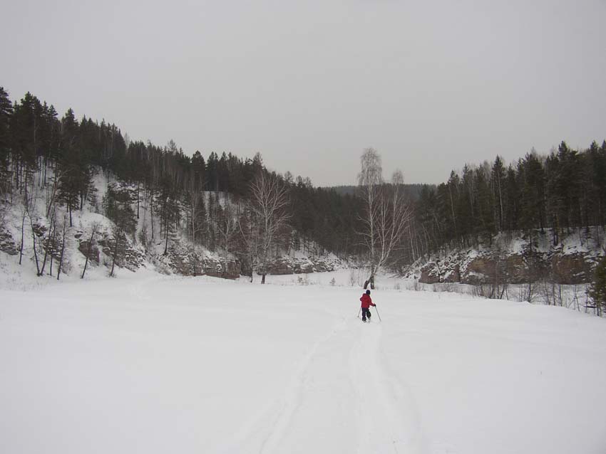На 3-й день мы отправились на беговых лыжах вниз по р. Б.Сатка до ее впадения в р. Ай и обратно (всего около 10 км)