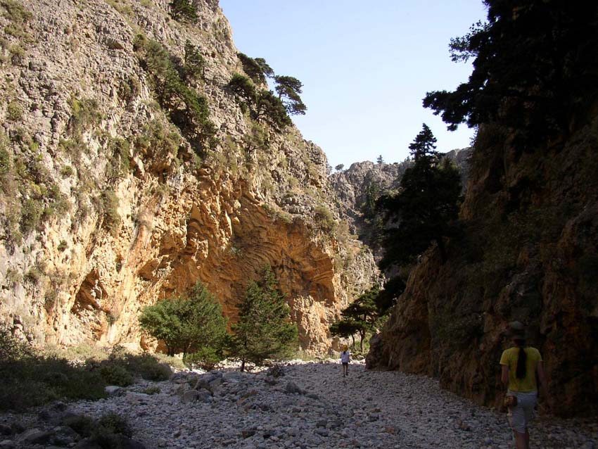 19 июня мы прилетели из Домодедово в Ираклион. В аэропорту нас встретил агент фирмы Greenways, вручивший нам ключи от трех автомобилей, на которых мы отправились на виллу Аскифо. Но не сразу, конечно, а очень постепенно, хотя хозяин нас ждал. Первым делом, в Ираклионе попали в пробку. К счастью, она оказалась первой и последней за две недели на Крите. Поначалу ехали очень осторожно, привыкая к машинам. Даже лучшая дорога - главная трасса вдоль северного побережья не везде имеет ограждение со стороны обрыва. Поведение на дороге довольно мирное: на пятки не наступают, хочешь обогнать - подвинутся. Вдоль трассы - кусты розовых и белых алеандров. В Бали заехали на пляж и искупались. Море очень теплое. В небольшом симпатичном городке Георгополисе пообедали в ресторанчике. Незаметно наступил вечер, и в Аскифо мы приехали уже в темноте. Когда мы притормозили, понимая, что находимся близко к цели, нас обогнал заждавшийся хозяин и поехал впереди. Без его помощи мы бы долго еще искали виллу Аскифо. Преодолев под конец довольно крутой подъем по грунтовой дороге, мы остановились у освещенного бассейна. Хозяин достал из холодильника порезанный арбуз и пятилитровую бутылку ракии, выпил с нами и уехал. А мы отправились изучать и делить помещение. Строение довольно древнее с толстыми каменными стенами, многоуровневое со сложной внутренней структурой. Есть стиль: стены из "дикого" камня - светлые, дерево - темно-коричневое. Вся мебель - разная. Некоторых разочаровал дефицит изолированных комнат. Деревянная лестница на второй этаж была не слишком удачно спроектирована: в течение недели некоторые из нас пытались пересчитать спиной ее наклонные ступени, но обошлось без жертв. В остальном вилла понравилась. Непосредственно вокруг нее все постройки заброшены, растут сливы. Южная стена бассейна - отвесная, высотой несколько метров, когда кто-нибудь ныряет, вода переливается вниз. Вид на горы, луну и звезды - замечательный. 20 июня Ущелье Имброс. В этот день решили посмотреть ближайшую достопримечательность - ущелье Имброс. Доехали до деревни, откуда начинается тропа минут за десять. Тут мы первый раз остановились около огромной трехэтажной черешни, на которую наши дети неоднократно нападали в последующие дни. Тропа сначала идет по широкой травянистой долине, которая постепенно сужается и превращается в ущелье. Ущелье очень красивое, извилистое, с разнообразными скалами. Дети бодро скачут вперед, большинство родителей гуляют далеко позади. Когда останавливаю детей подождать, они тут же начинают заползать на стены, главная проблема заставить их не лезть слишком высоко. Еще одна опасность: гуляющие по склонам домашние или дикие козы иногда роняют камни. Ущелье тянется несколько километров, ближе к концу оно постенно расширяется 21 июня Лутро. 22 июня Франко Кастелло. 23 июня Ущелье Самария. Прогулка в горы. 24 июня Монастырь Превели. Пляж Превели. 25 июня Гроты около Хора Сфакия. 26 июня Район горы Кастро. Переезд на виллу Алева. 27 июня Дикий пляж в районе Скепасти. Ретимно. 28 июня Монастыри. Хания. 29 июня Пещеры Мелдони и Зевса. 30 июня Кносский дворец. 1 июля Пещера Сфандони. Маргаритос. 2 июля Аквапарк "AkvaPlus". Ираклион. 3 июля Ираклион - Домодедово. Ссылки: Ирина Коршунова: Крит в апреле 2006 (хорошие фотографии) |