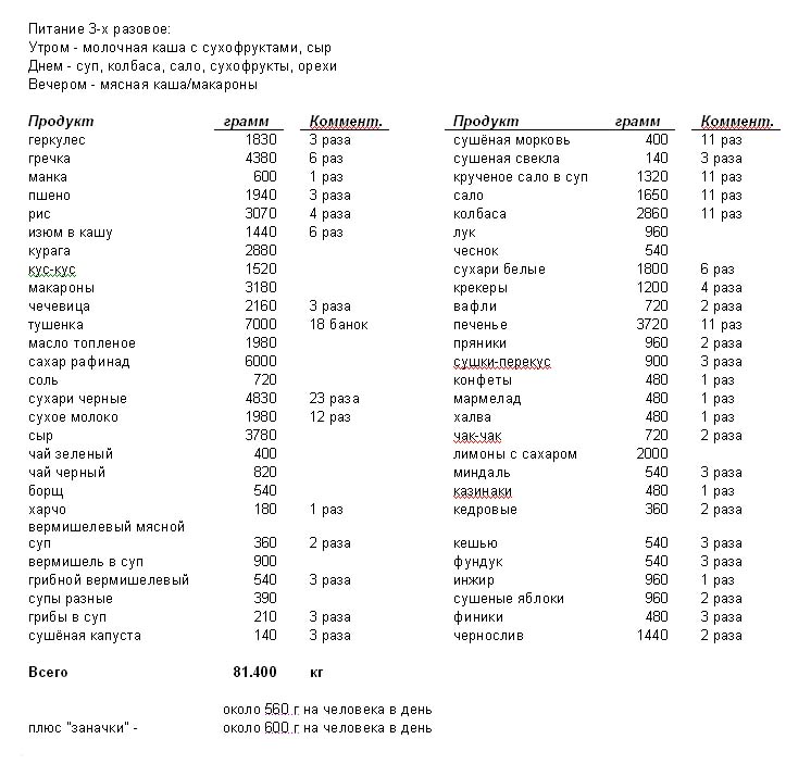 Продукты в походе