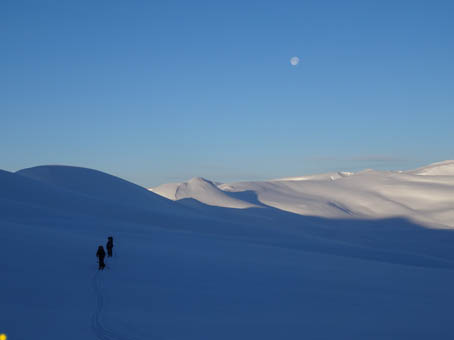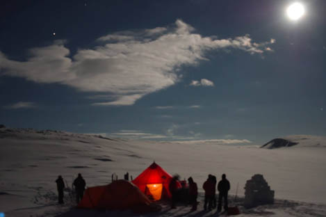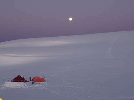все выскочили из палаток и почти час восхищались луной, звездами, ярко освещенными снежными горами и фотографировали, фотографировали.