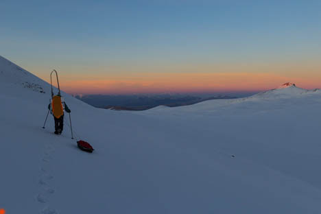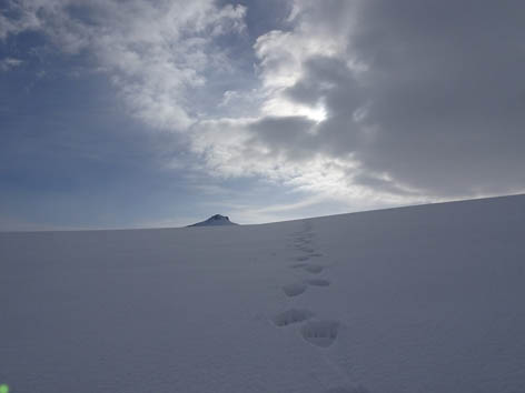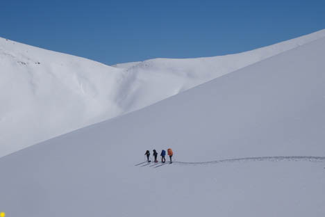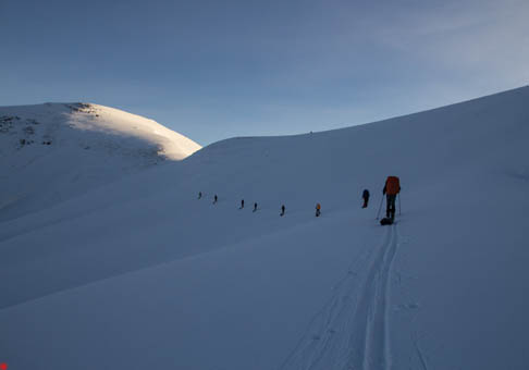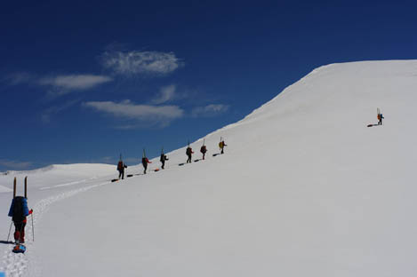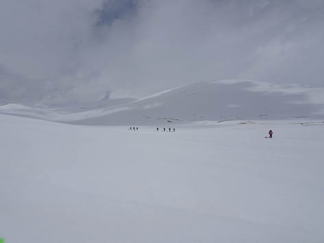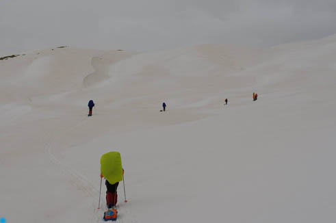 Со снегом на перевале все в порядке, и мы стартовали на лыжах прямо от дороги.
