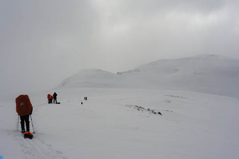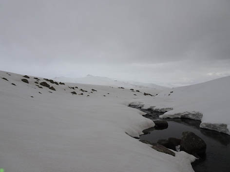Высота 2850, ветер существенно сильнее, чем у ручья. Погода пасмурная, видимость ограниченная.