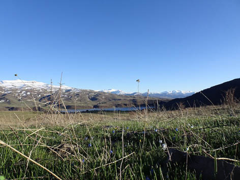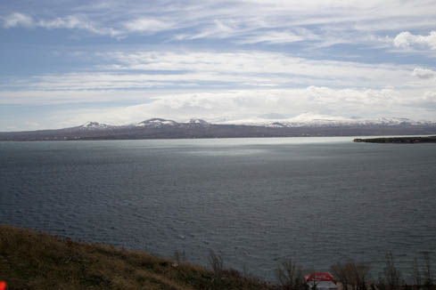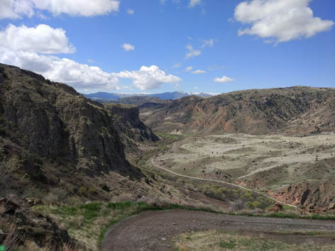 Проехали мимо поселка Лернанист, где начинали поход в 2013 году. Разглядываем Гегамский хребет, там снега много.