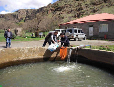 После обеда едем на горячие источники, которые находятся на правом притоке Арпы западнее водохранилища.