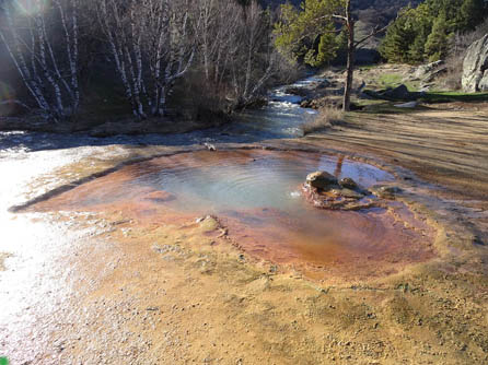 Еще несколько сот метров вверх по ручью, и вот травертиновый купол, совсем как на Камчатке, в центре которого бурлит теплый источник (+36),