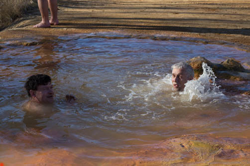 периодически он начинает слегка фонтанировать. Все желающие искупались в этом гейзере.