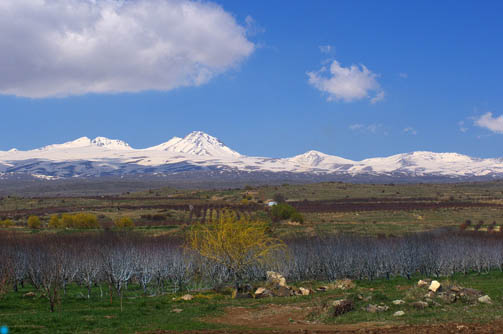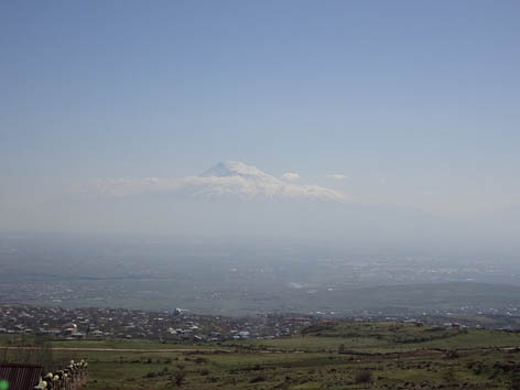 Напротив нас под солнцем высоко над долиной, отделенный от нее полупрозрачной дымкой, как бы висел в воздухе грандиозный Арарат.