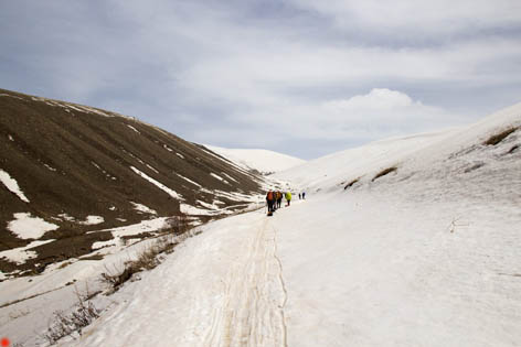 Т.е. в апреле вряд ли можно проехать по ней больше 2-3 км от Джермука. Нам пришлось идти без снега последние 1.5-2 км.