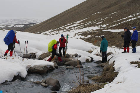 Решили пока идти вдоль ручья: не так сильно дует и есть вода.