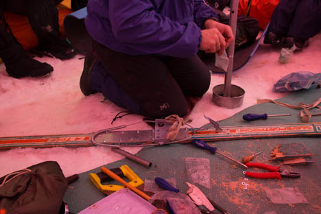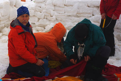 Ночью сломался центральный кол. Разбудила рухнувшая на нас крыша палатки с мокрым снегом.