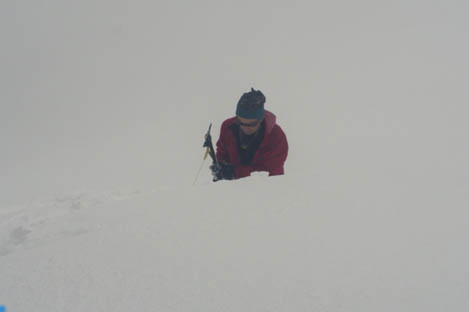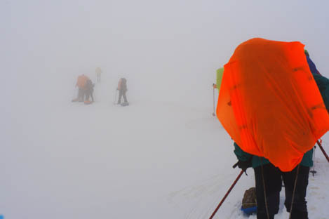 Обрыв может быть совершенно незаметен буквально на расстоянии 2-х метров. В такую погоду лучше воздержаться от движения по гребню.