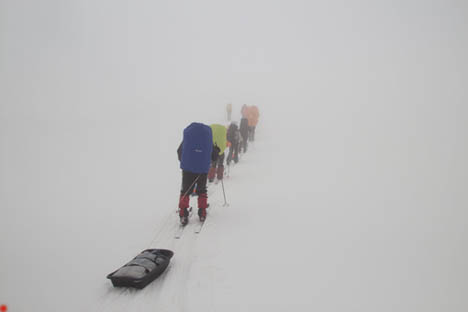 После обеда видимость опять ухудшилась. Продолжили движение на восток по навигатору по южным склонам.