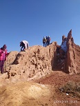 Полдня лезли то вверх, то вниз, даже по каким-то скалам.